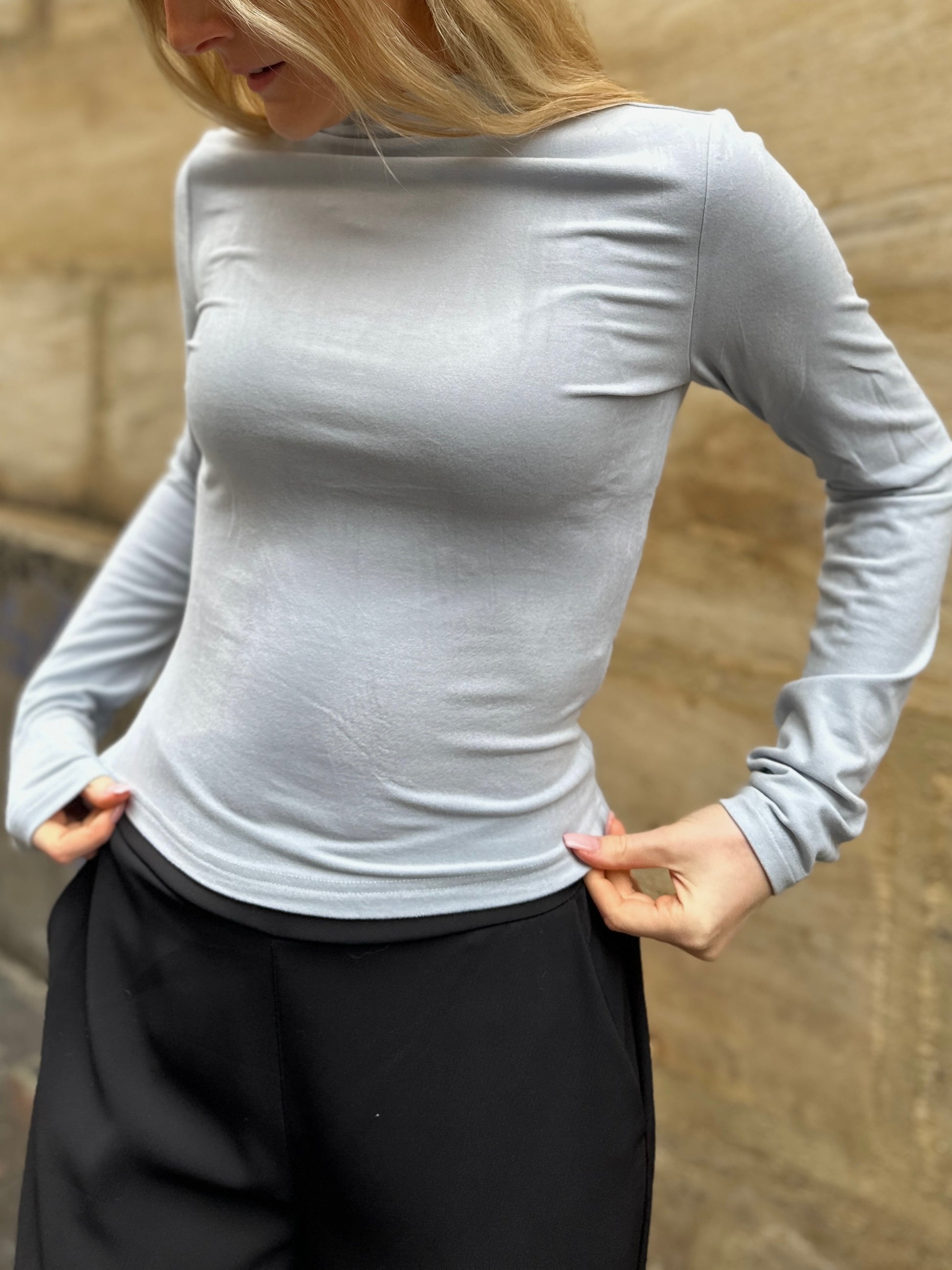 Unser super softes Langarm Shirt in der Farbe Ocean.