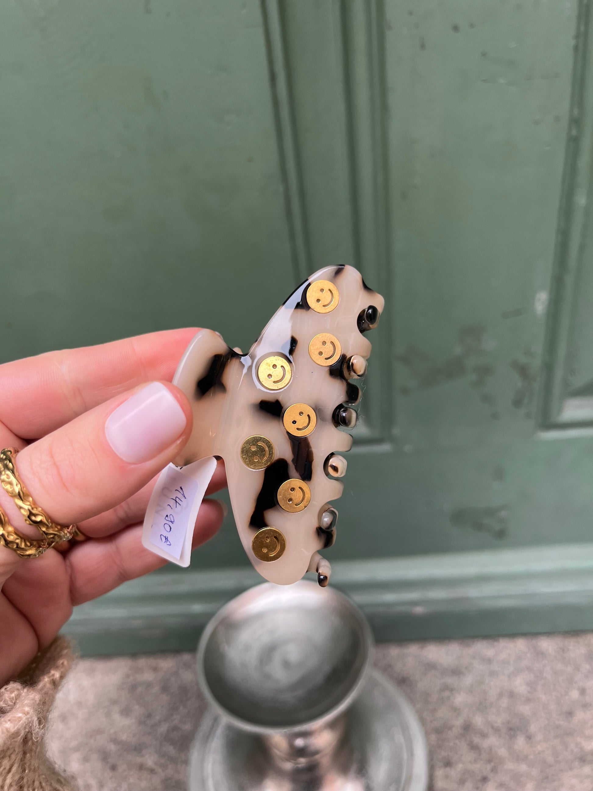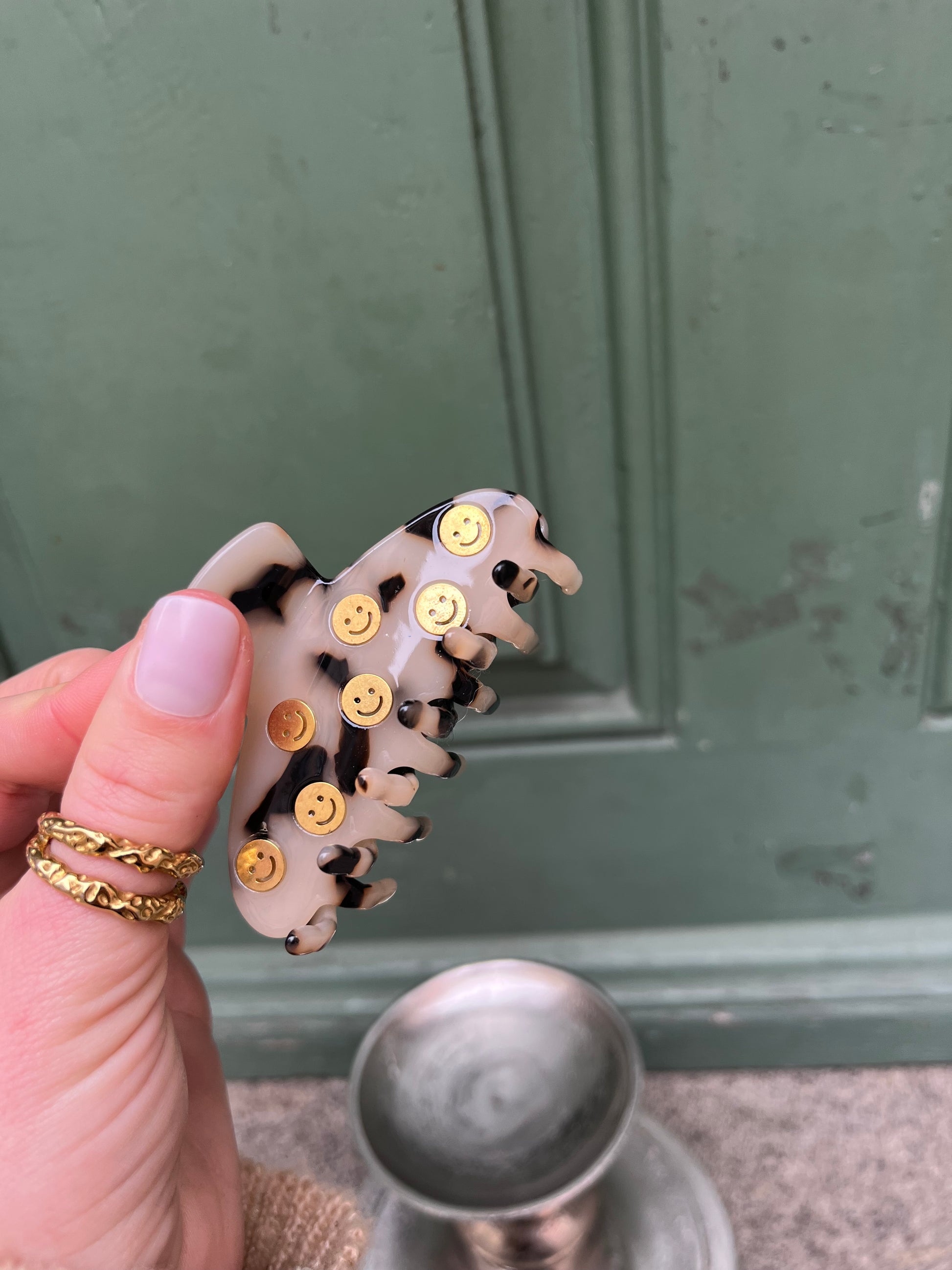 Unsere süße Haarklammer mit kleinen goldenen Smileys 🥰