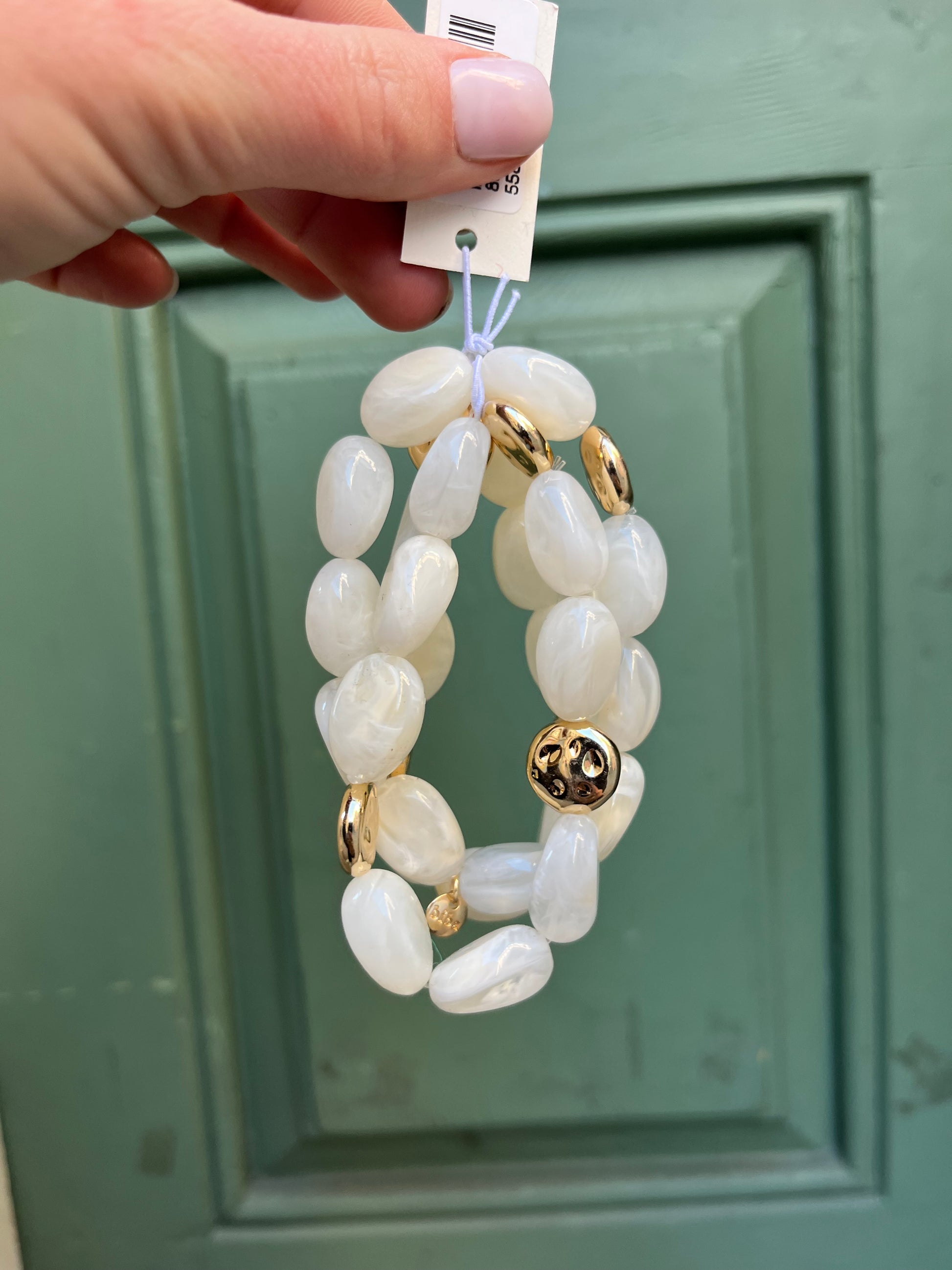 Unser goldfarbenes Armband Lilly mit Gummizug, passt um jedes Handgelenk 🥰