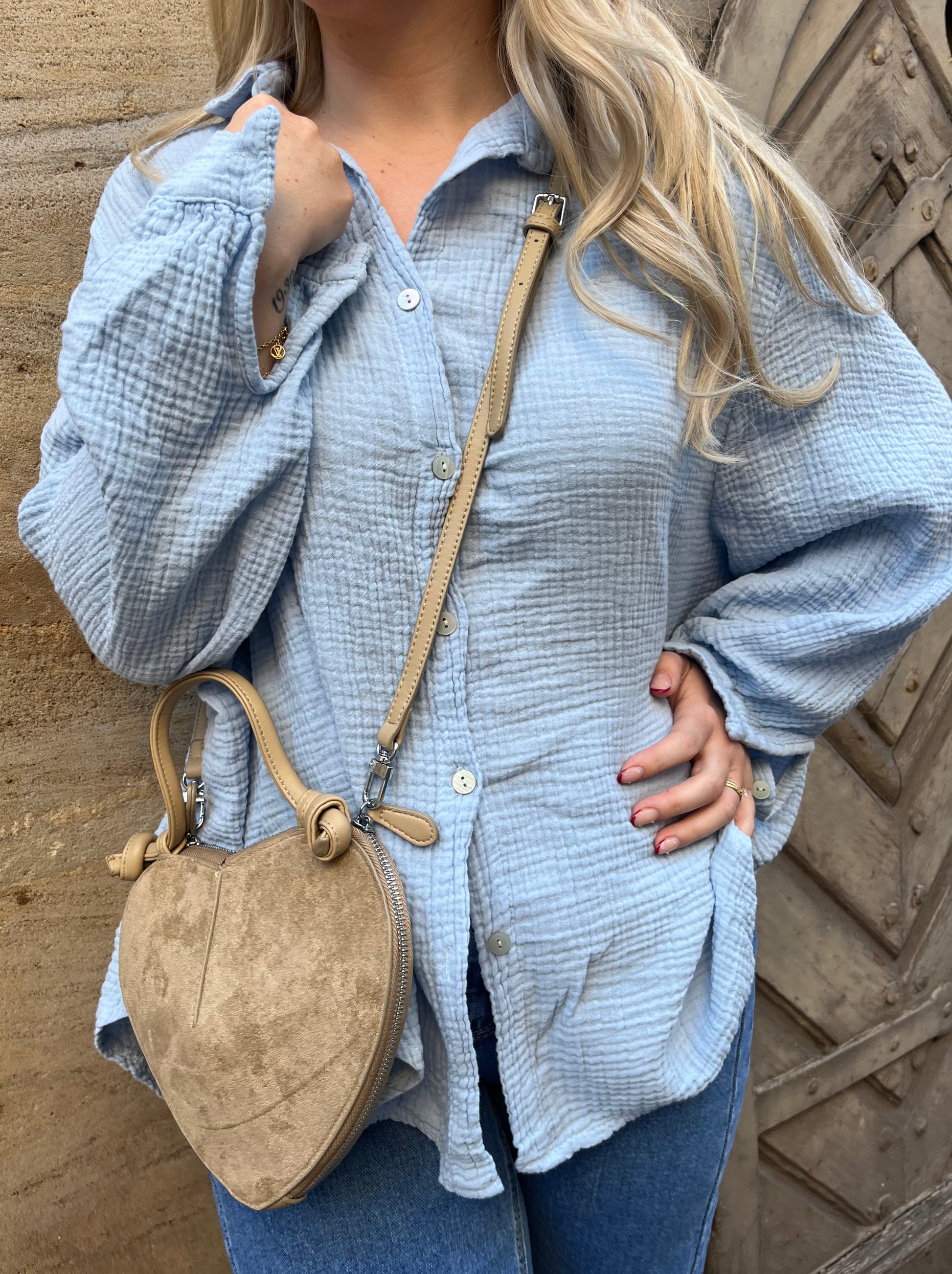 Unsere wunderschöne Musselinbluse hat die perfekte Länge und kommt gleich in drei Farben: Bubblegum, Ocean und Brownie 🥰