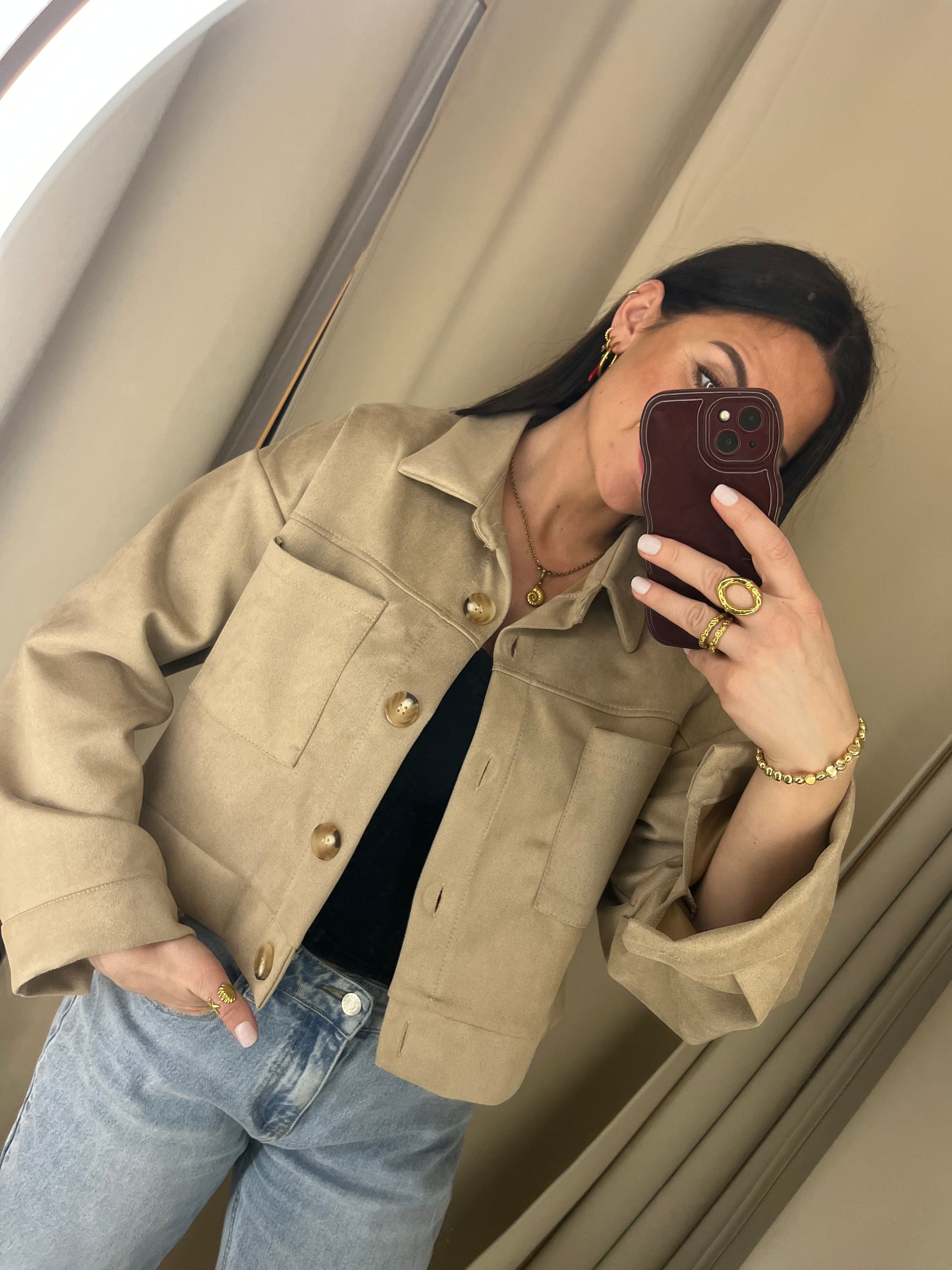 Unsere beige cropped Übergangsjacke passt zu jedem Outfit und ist ein absoluter Allrounder 😍